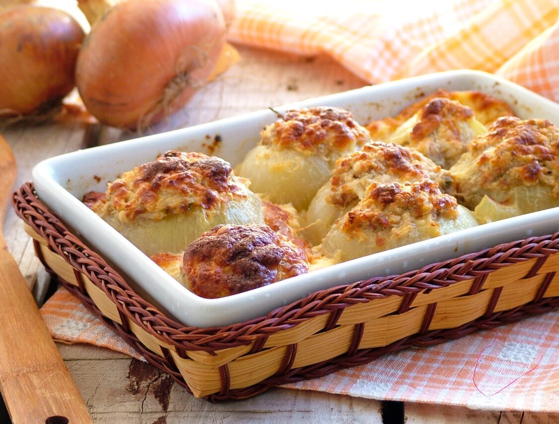 Cipolle bionde, spezzatino, salsiccia, pane pesto, latte, uova, parmigiano, spezie… e un ingrediente segreto.